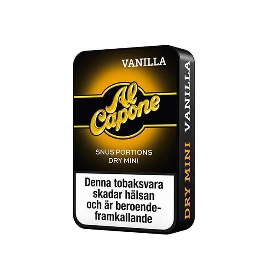 Al Capone Vanilla White Mini har en balanserad och söt smak av vanilj som levereras i diskreta miniportioner med låg rinnighet. Nikotinet i prillorna frigörs snabbt och smaken håller i sig länge på grund av portionernas torra yttre. Nikotinhalten på 8 mg per prilla är något högre än ett vanligt minisnus.