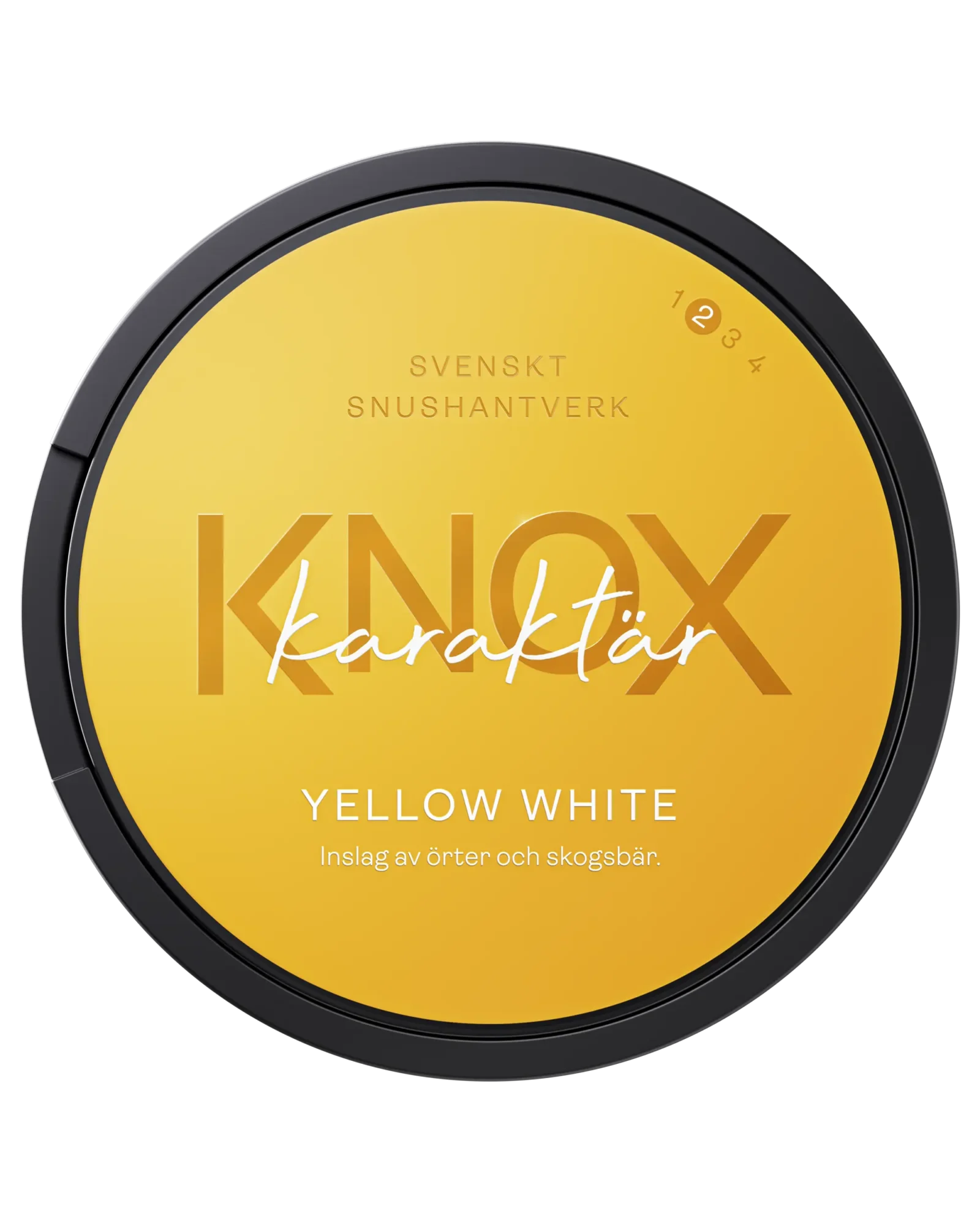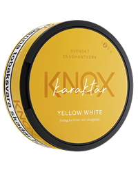 Knox Karaktär Yellow White är en originalstor prilla med en smakprofil som kombinerar traditionell tobakskaraktär med inslag av örter och skogsbär. Produkten har originalstyrka och låg rinnighet.