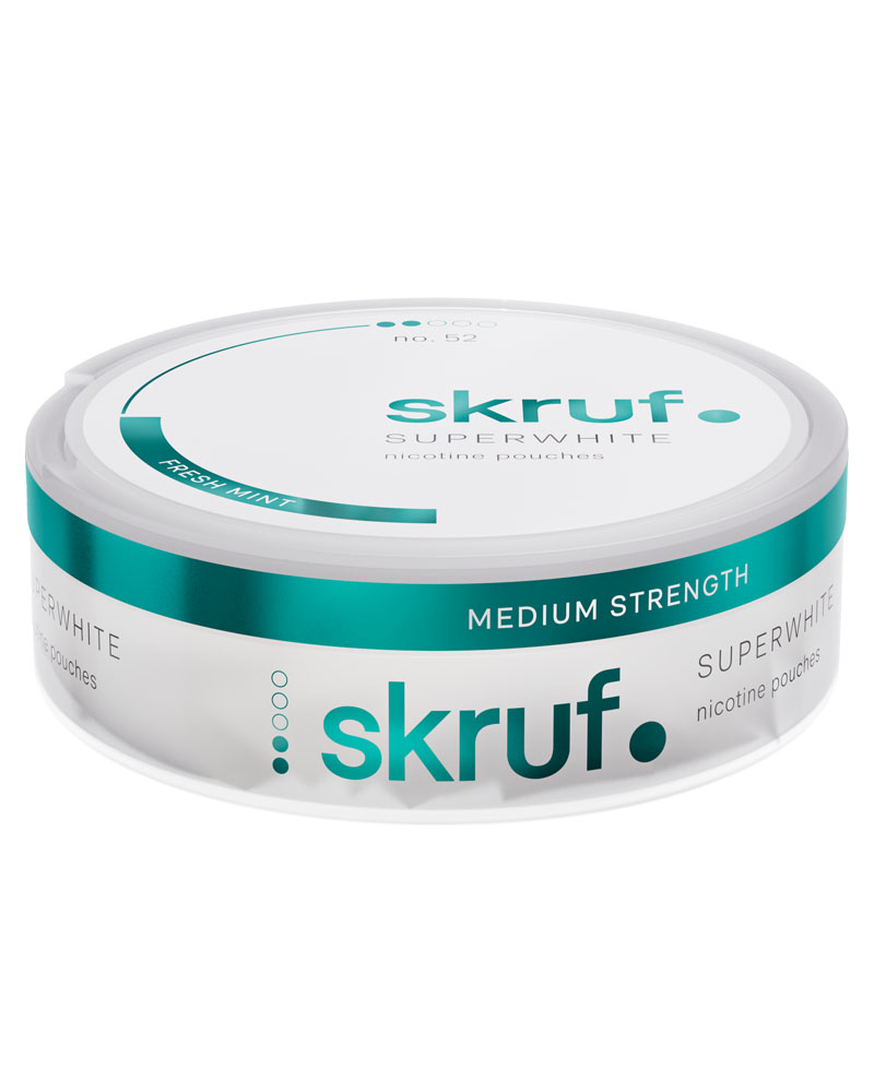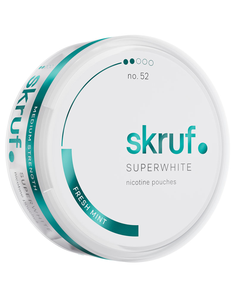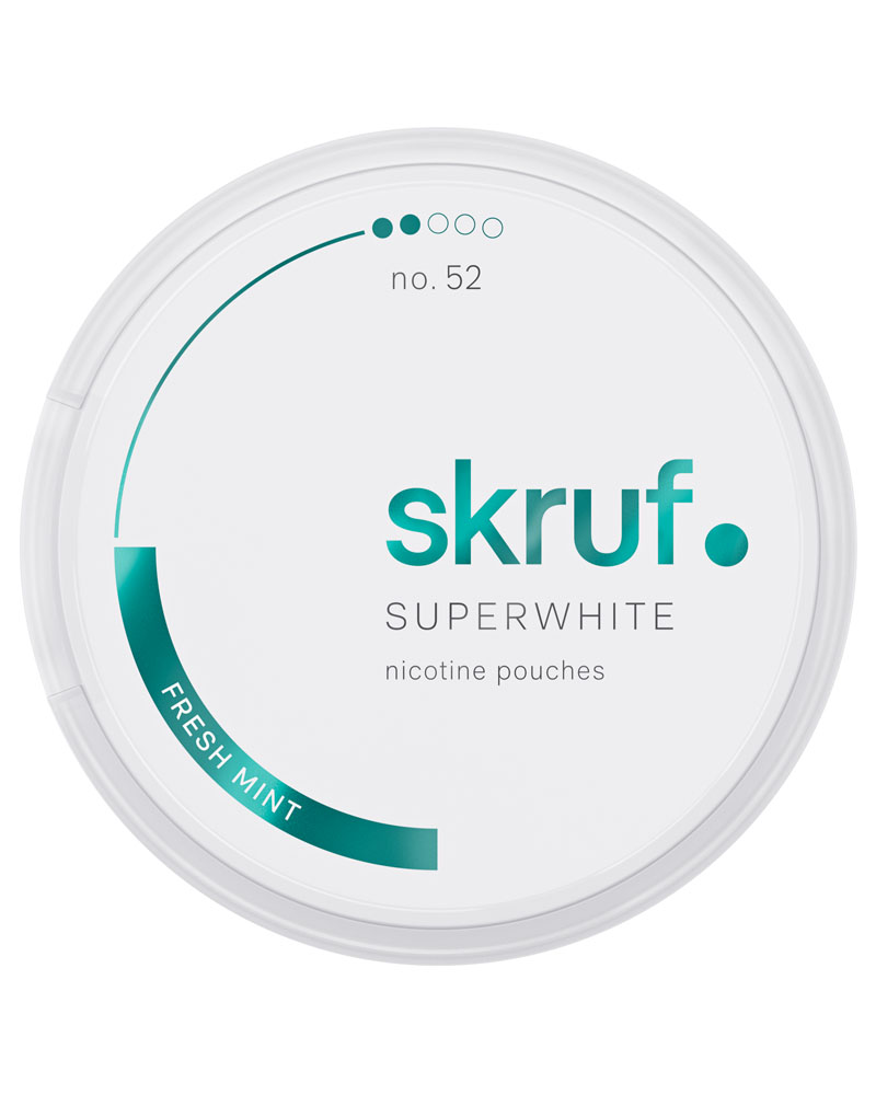 Skruf Superwhite no. 52 Fresh Mint Medium Strength är en all white produkt i slimformat utan tobak med en isande smak av mint.