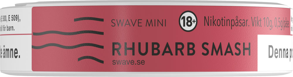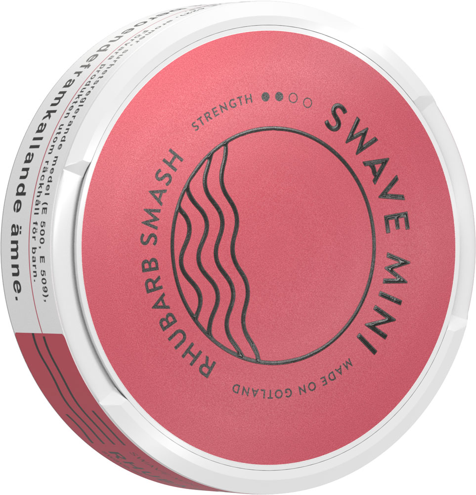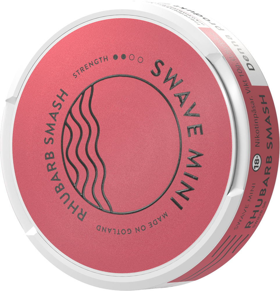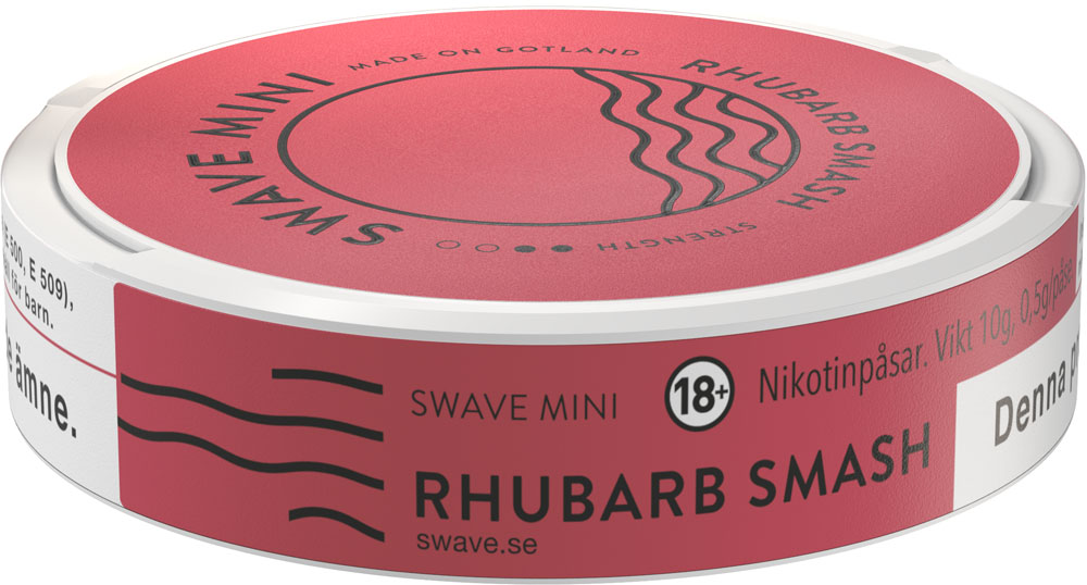 Swave Rhubarb Smash har smak av rabarber och hallon. Det är en långsmal prilla som är torr på ytan med fuktigt innehåll för låg rinnighet. Styrka 2.