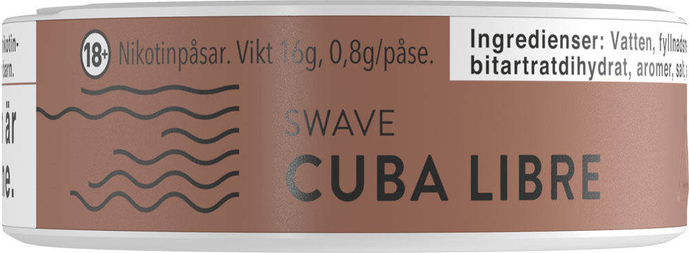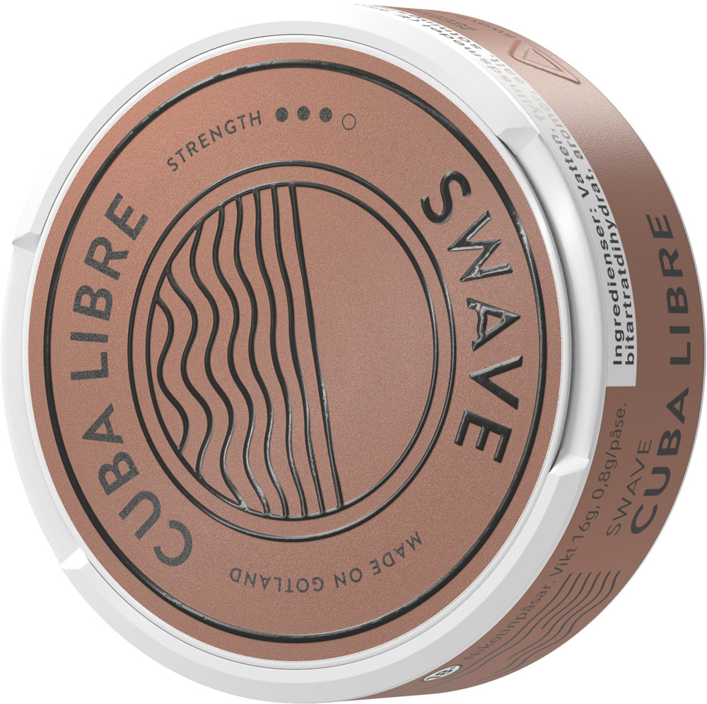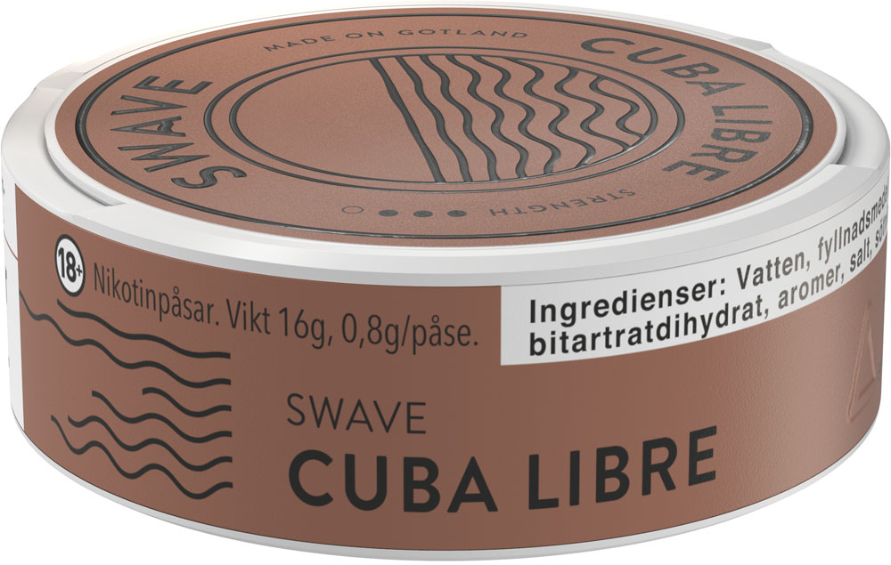 Cuba Libre, med smak av kanel och vanilj med toner av citrus spetsad med rom. Swave bjuder på en snabb leverans av nikotinet med en tydlig, långvarig smak utan att rinna.