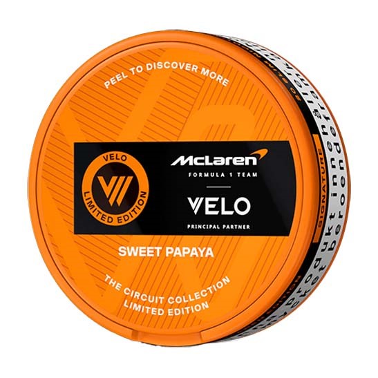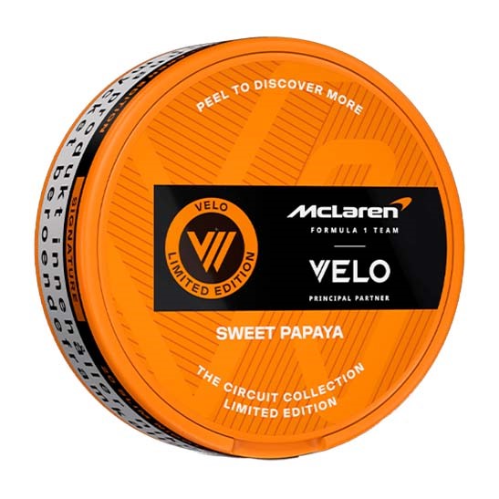 VELO Sweet Papaya är den nya 2025 McLaren Limited Edition från VELO. Den har en papayasmak med en söt och krämig ton.