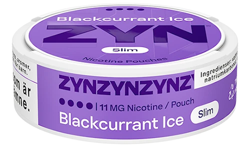 Hoppa till innehållZYN Blackcurrant Ice Slim Extra Strong har en kylande smak av mentol, mörka bär och frukt.