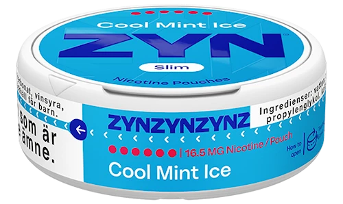 ZYN Cool Mint Ice Slim Ultra Strong har en kylande smak av pepparmint och mentol.